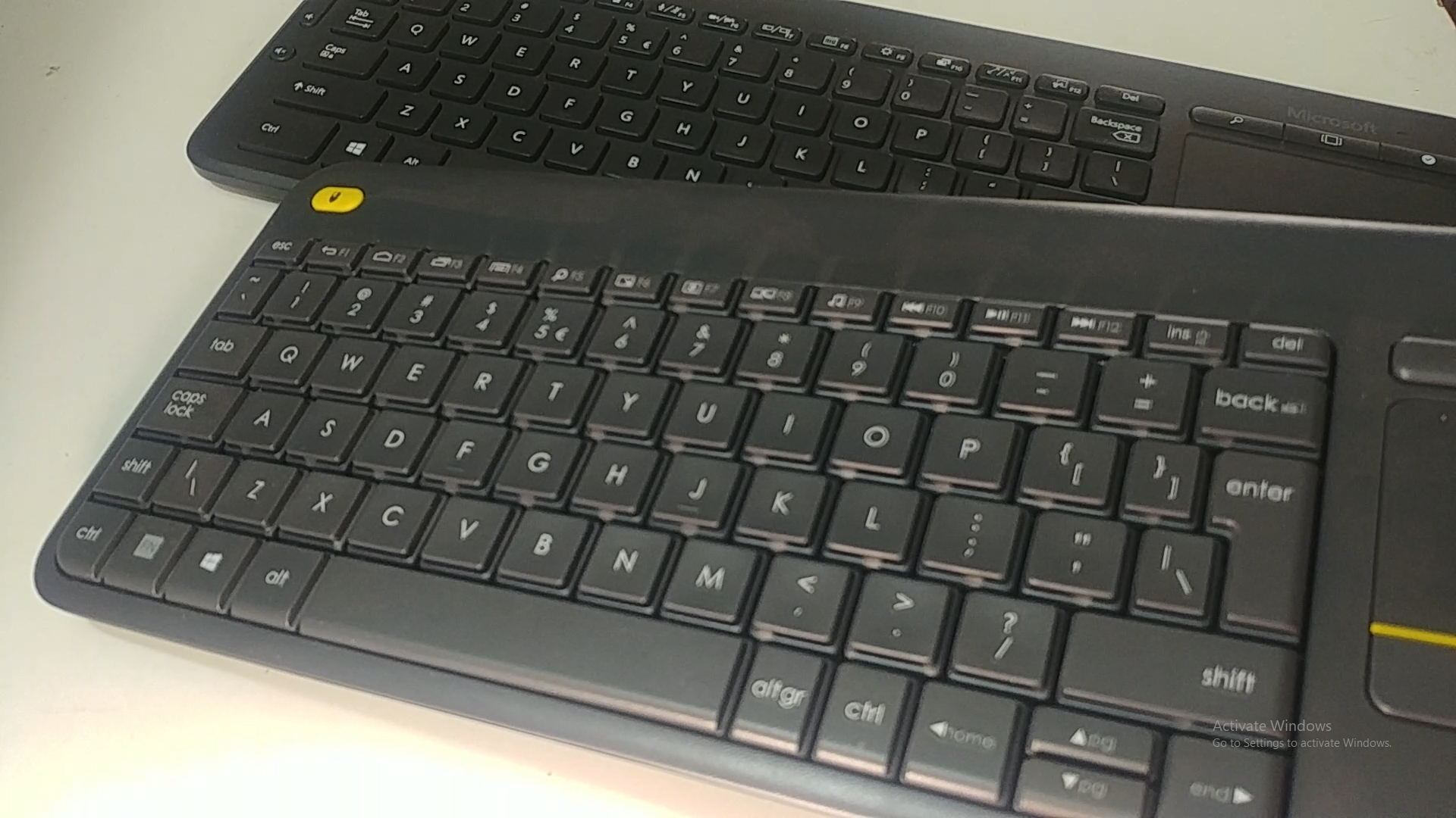 The K400 Plus features a standard QWERTY layout with additional function keys and an integrated touchpad.