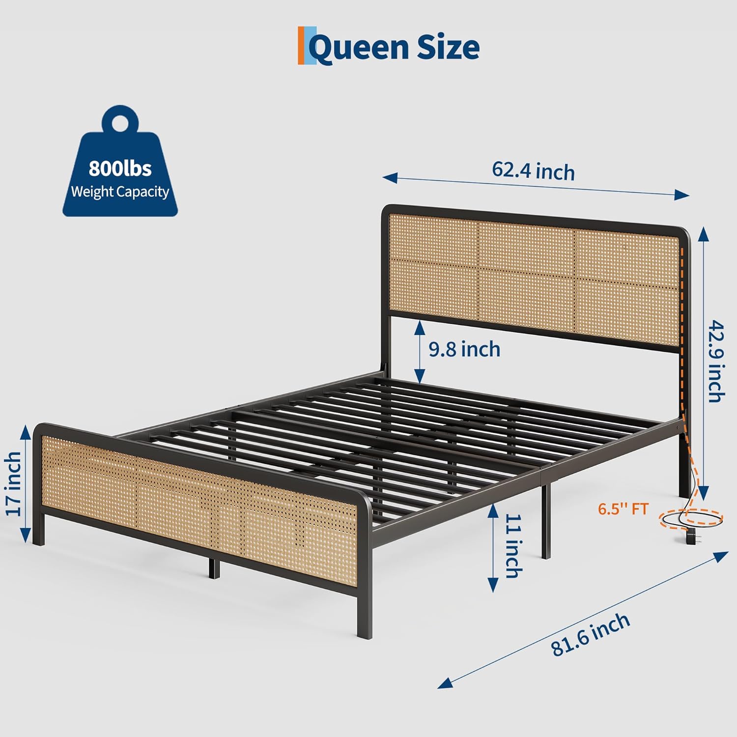 | Посебни карактеристики | No Box Spring Needed, Rattan Headboard with LED Light, Squeak Resistant |