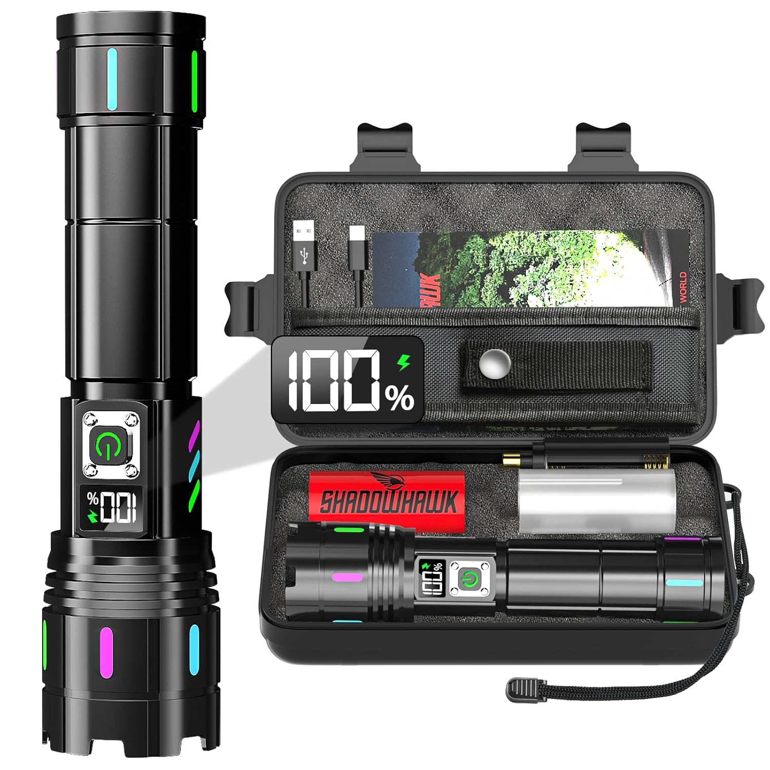 - 1 x Shadowhawk S1618 Rechargeable LED Flashlight